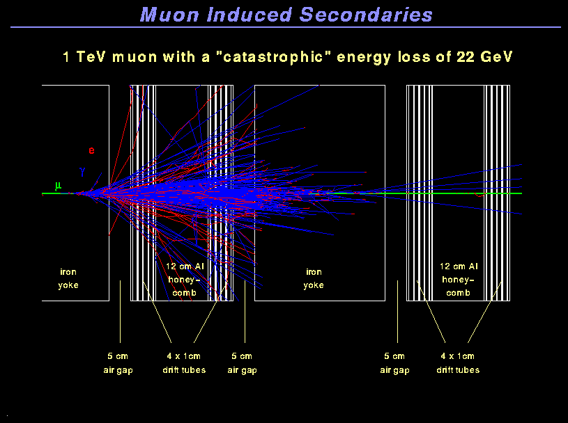 1 TeV muon producing 22 GeV shower