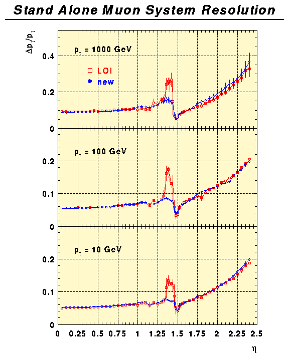 stand alone muon momentum resolution - influence of the gap at eta = 1.4
