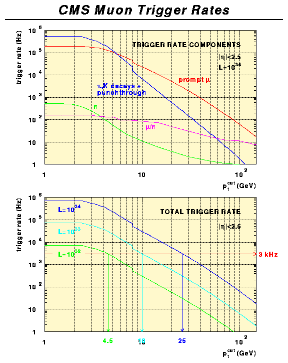 trigger rates at various luminosities