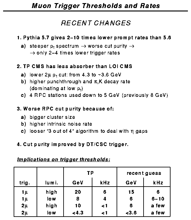 trigger thresholds and rates - summary