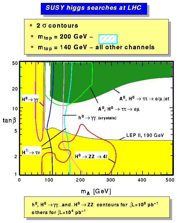 MSSM higgs - tan beta vs m_H, 2 sigma contours