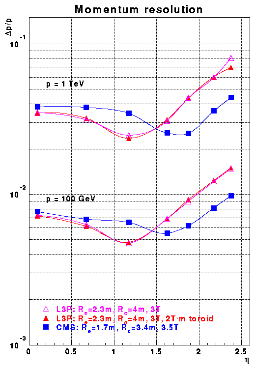 momentum resolution of CMS and L3P