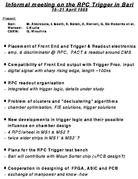 meeting on the RPC Trigger in Bari, 19-21.04.95